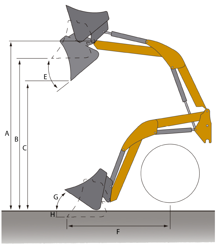 B …. Altura máxima de alzamiento debajo del nivel del cazo